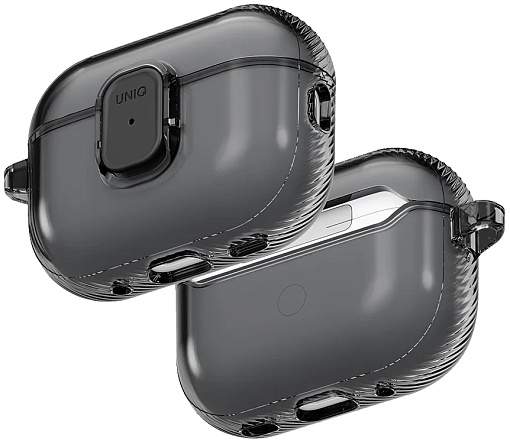 Чехол + карабин Uniq Glase Pro TPU case для Airpods Pro 3, прозрачный черный (AIRPODSPRO3-GLSPGSMK)