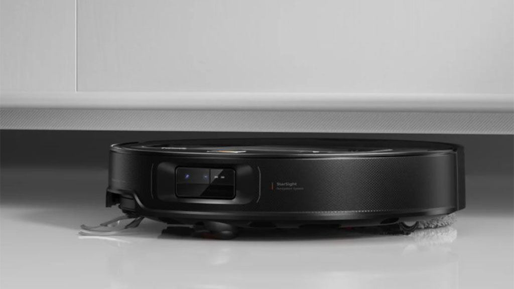 Несмотря на все «умности», это ещё и невероятно мощный пылесос. Всасывание в 22 000 Па справится с любым мусором. А благодаря уникальному шасси AdaptiLift и поднимающимся щёткам FlexiArm он добирается туда, куда другие не могут: в узкие углы, под низкую мебель и через пороги. Он не запутается в шерсти вашего питомца и сам вымоет себе швабру в док-станции.